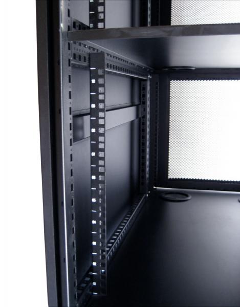 The DSI 1442 offers 4 compartments ideal for collocation server rack environments. Structured around a standard 4-post frame, the four compartments accommodate equally 10U of height and storage space for structuring your collocation environment. Each partition wears multiple tack welds for increased strength and security and each compartment has its own set of depth-adjustable vertical rails.