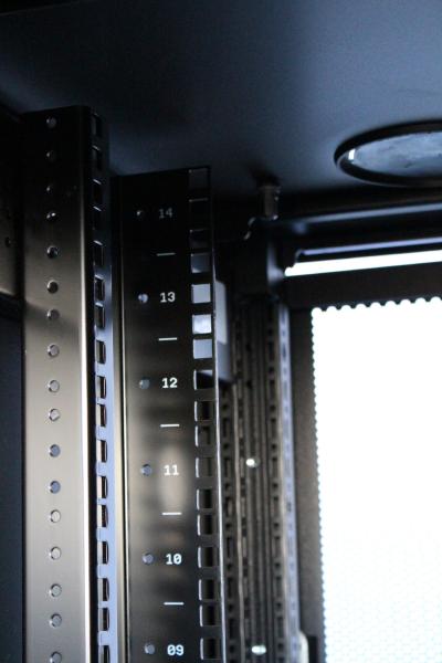 The HP 11614 1075mm server rack enclosure is structured around a standard 4-post frame that yields 14U of height for a modern data center. With a 3,000 pound capacity, the welded frame is designed for durability and includes a door with greater perforation for better airflow.